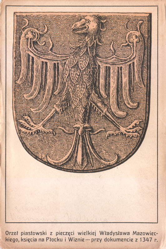 Orzeł piastowski z pieczęci wielkiej Władysława Mazowieckiego, księcia Płocka i Wiznie - przy dokumencie z 1347 r.