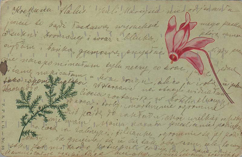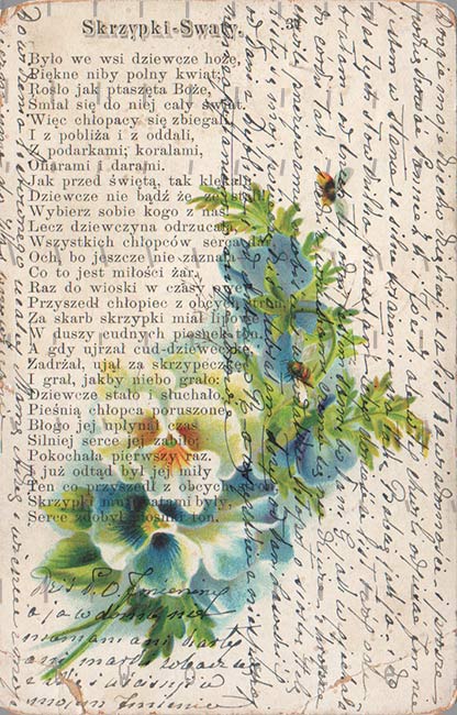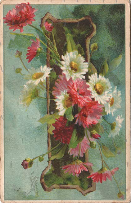 Pocztówki z kwiatami popularne pod koniec XX wieku, słuzyły do przesyłania życzeń imieninowych i urodzinowych. Ale ku memu zdziwieniu wcale nie tak dużo pocztówek ozdobionych kwiatami na początku wieku. Były, co tu prezentuje, ale nie mam ich dużo. Myślę, że kochano kwiaty prawdziwe.