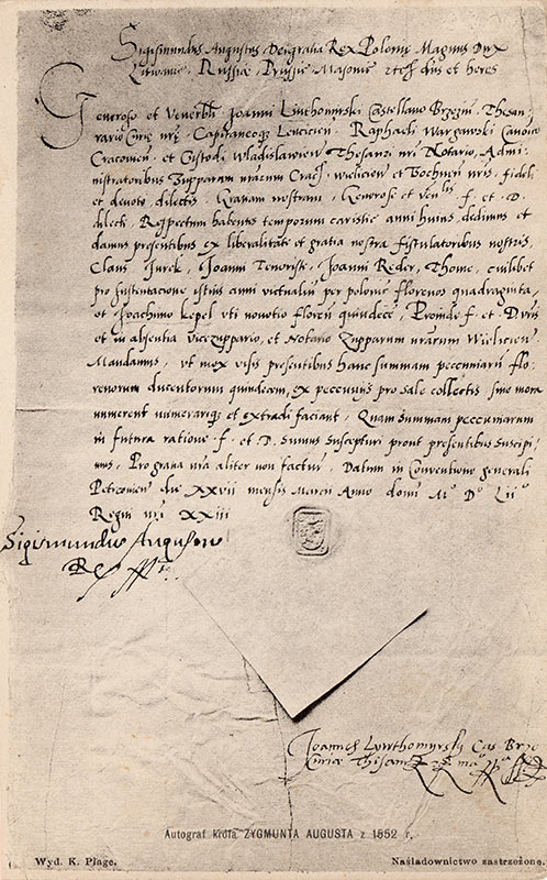 Autograf Króla Zygmunta Augusta z 1552 r.